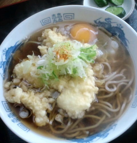 写真は「イカ天そば」にサービスの卵付きです。