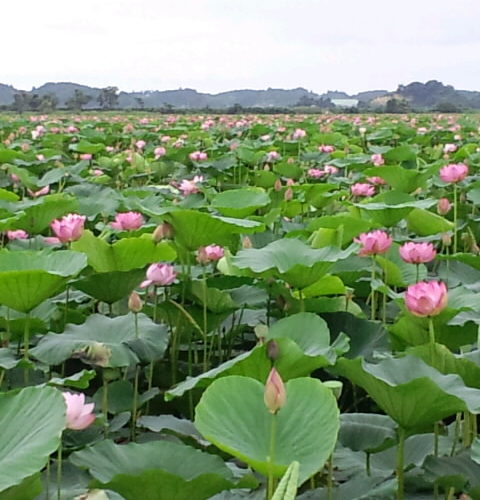 夏になり、いまの季節は沼一面がピンク色の美しい蓮の花におおわれます。