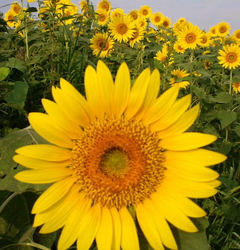 宮城県大崎市三本木斉田にある「ひまわりの丘」は、約6ヘクタールの畑におよそ42万本のひまわりが植えられており、8月中旬までの期間中は、ひまわりまつりが開かれています。今年は天候の影響もあり、撮影に行った日(14日)は、ちょうど見頃を迎えていました。暑い夏と、黄色のビタミンカラーが似合う「ひまわり。」元気が出るかも…。がんばろう東北・宮城!