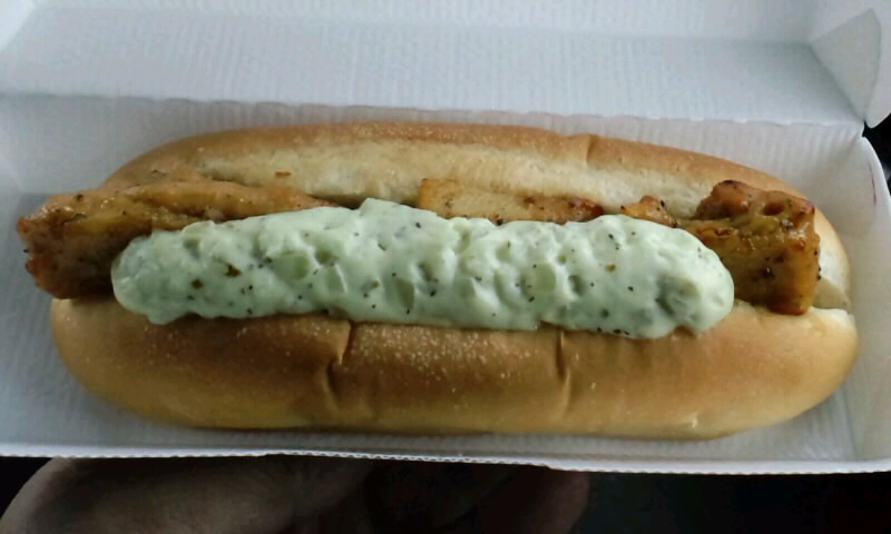 チキンが柔らかいフランスパン?に挟んであります。