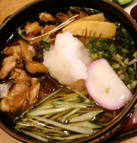 お盆に入り、山形市内の道路もお店も混んでますね〜。久しぶりにお昼は富の中にある「門前つくも支店」さんで『つめたい とりおろしそば』をいただいてきました。鰹節のきいたつゆでおいしかったです。ここは、ラーメンより、そばかな?