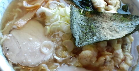 天かす、カツオ節、ネギ、生姜、かまぼこ、ゆで卵などが、のっています。