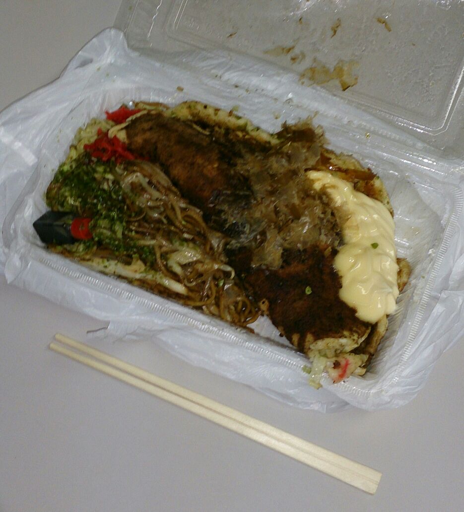 私は「やきそば・お好み焼きセット」(なんと400円!)をテイクアウトで…。