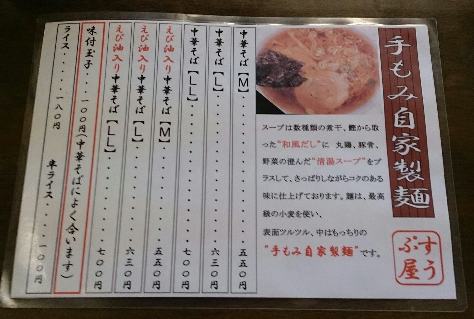 メニューや、看板にもあるように手もみの自家製麺は茹で加減、食感もよく、