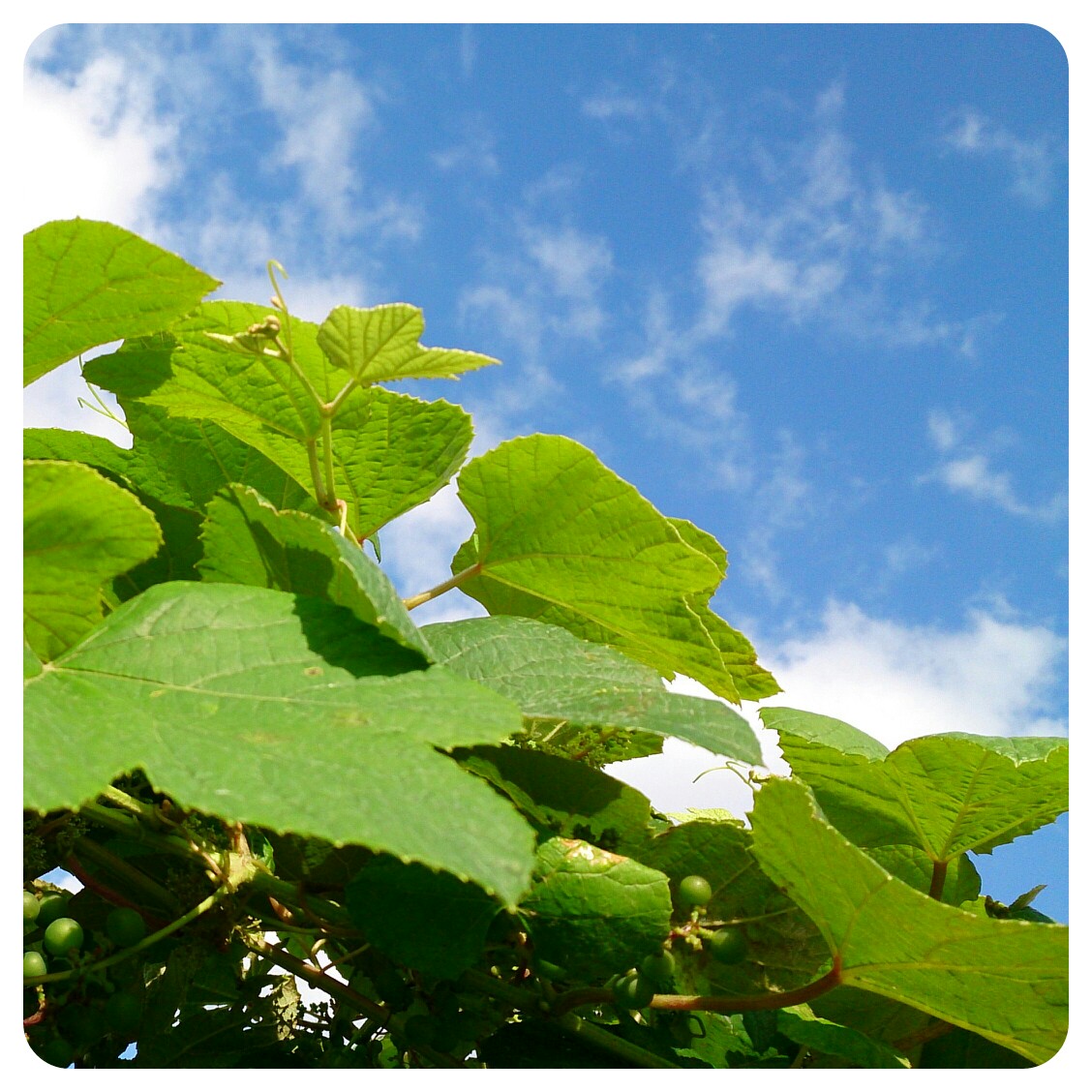 山ブドウの葉っぱの緑と、空の青がいい感じでした。