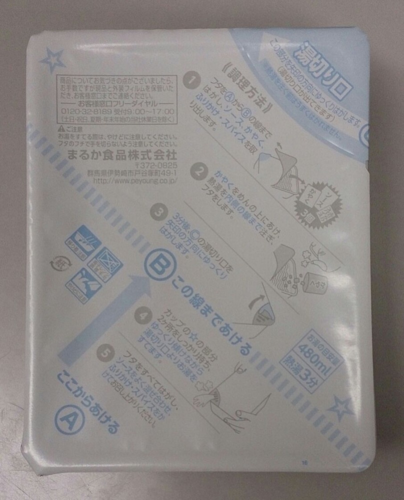 二重容器から一般的な形になり、今までのような蓋が無くなり、湯切り口もフィルムの一部をはがす、他社の商品と同様のスタイルになっていました。