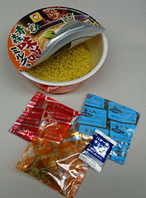 ・・・マルちゃん(東洋水産)日本うまいもん青森編(山形県民の自分にとっては、ちょっと怪しい名前の)「青森味噌カレーミルクラーメン」です。