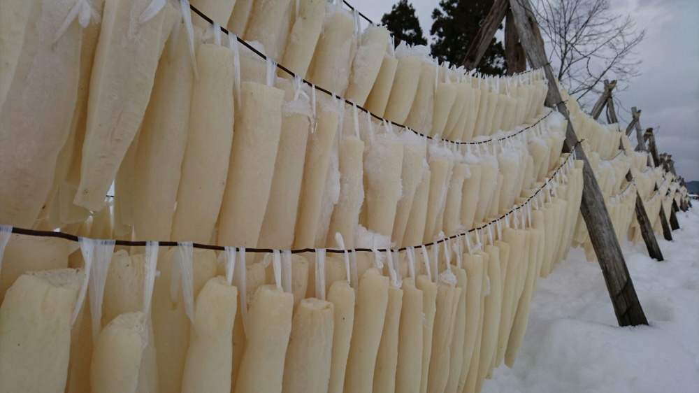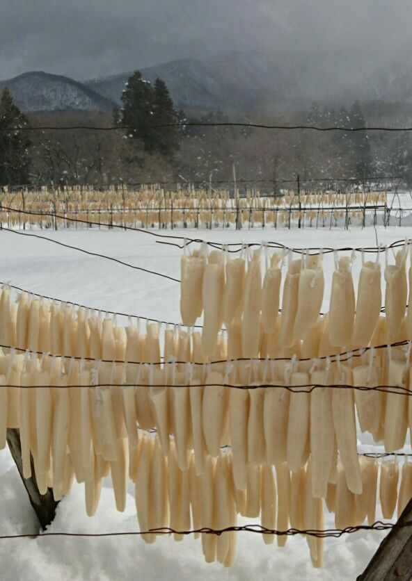 凍み大根(山形市) by delta · 公開済み 2016年1月30日 · 更新済み 2016年2月2日 山形市神尾地区では、冬の風物詩にもなっている「凍み大根」作りが行われており、西蔵王の冬の風景となっています。 凍み大根が連なる風景は、西蔵王高原ライン沿いに見ることが出来ます。 共有: クリックして印刷 (新しいウィンドウで開きます) 印刷 投稿