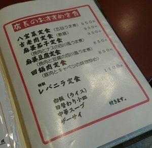 『回鍋肉定食』(豚肉とキャベツの味噌炒め)です。