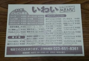 いわい(天童市) by delta · 公開済み 2017年10月28日 · 更新済み 2024年10月7日 天童市南町から一日町に移転オープンした、 どんどん焼きのお店『いわい』さんに、伺いました。 メニューを見ながら、注文したのは・・・ 『お好み焼き』と、 『マヨたこ』を持ち帰りで・・・。 美味しかったです!ごちそうさまでした。 次回は、『どんどん焼き』(看板メニュー)かな。 共有: クリックして印刷 (新しいウィンドウで開きます) 印刷 投稿