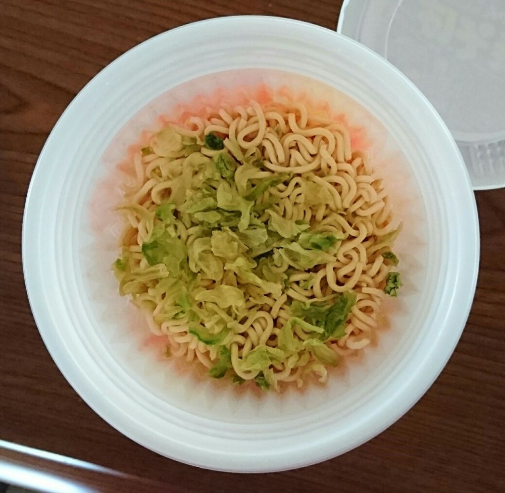 蓋をあけると、麺のほかに、かやくと粉末スープの小袋が入っていました。
