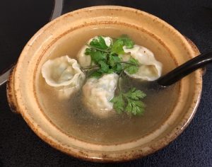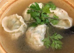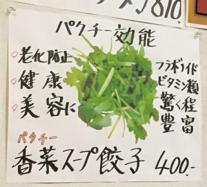 『香菜(パクチー)スープ餃子』です。