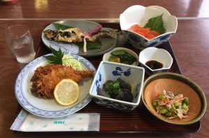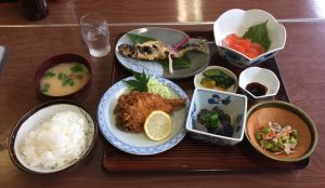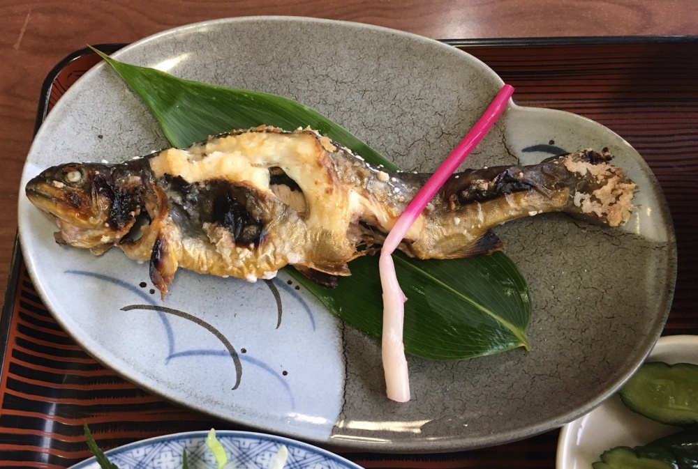 ニジマス料理のほか、煮物などの小鉢や漬物も付いてきます。
