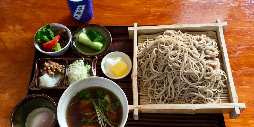 つけ汁にはネギ、納豆、大根おろし、ラジウム卵といった薬味がたくさん付いてきます。