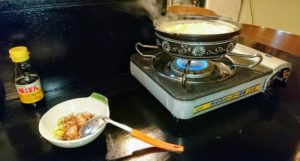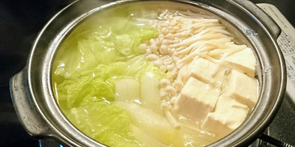 メインの豆腐のほか、白菜、エノキダケが入っていました。