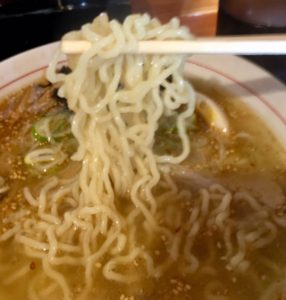 中細の縮れ麺が、あっさりながらもコクのあるスープに絡んで、