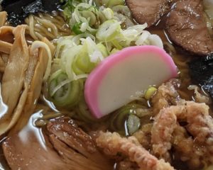 具材はチャーシュー、メンマ、海苔、ネギといった感じです。