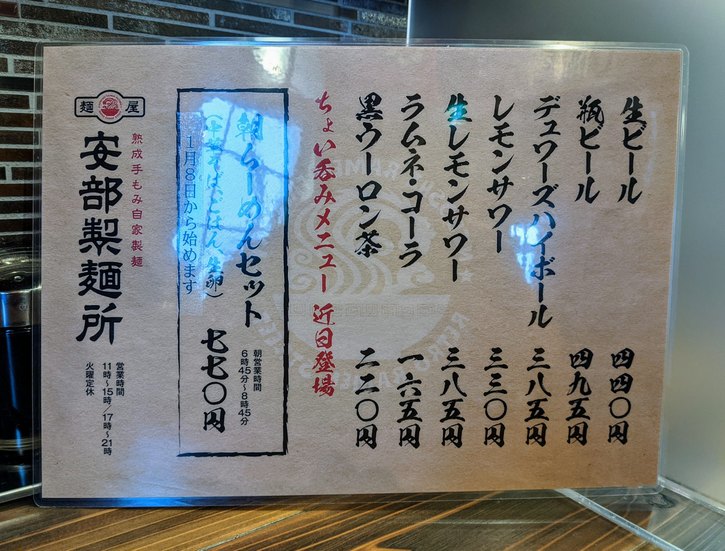 最近、山形市あさひ町にオープンされた『麺屋 安部製麺所』さんへ・・・。