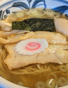 具材はチャーシュー、メンマ、海苔、ナルト、ネギといった感じ。