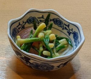 お通しは、旬を感じる『アサツキとマグロの和え物』でした。