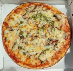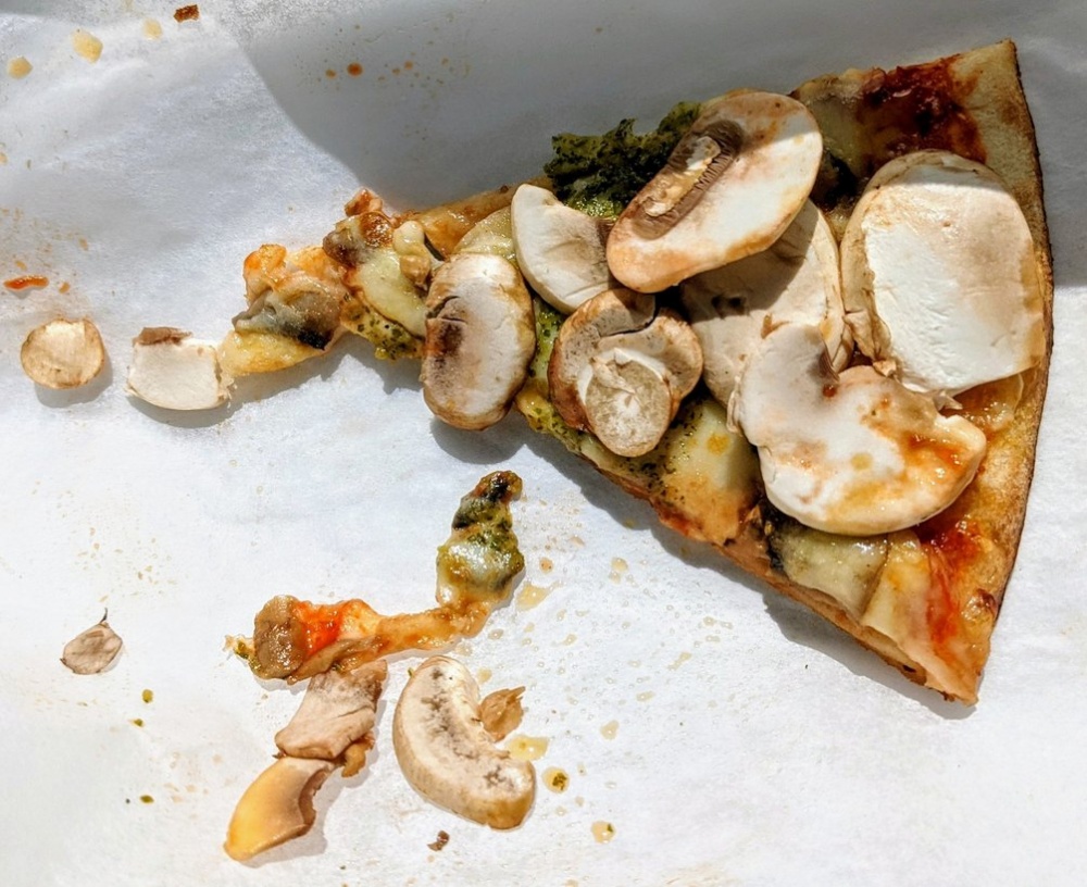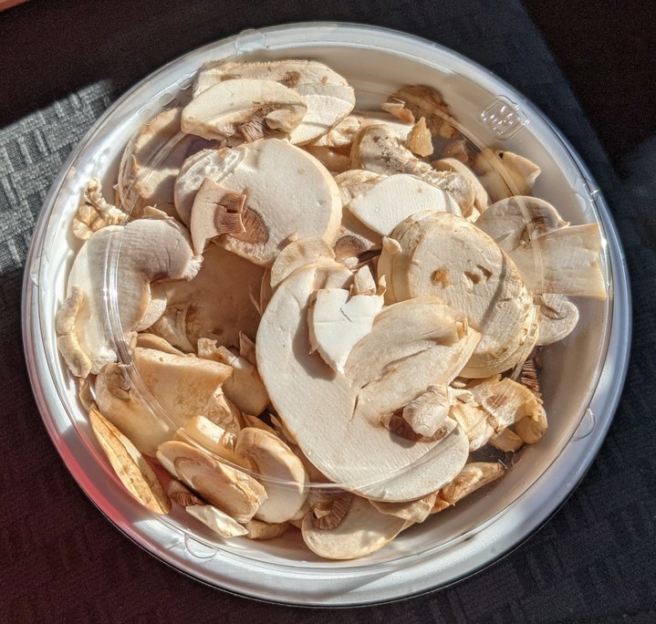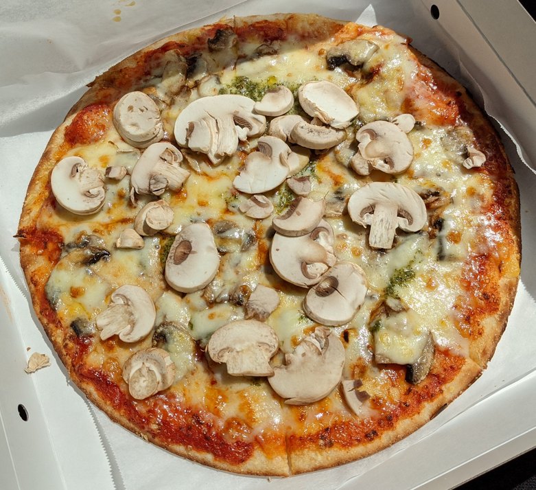 ソースやチーズとともに、舟形マッシュルームが入っています。