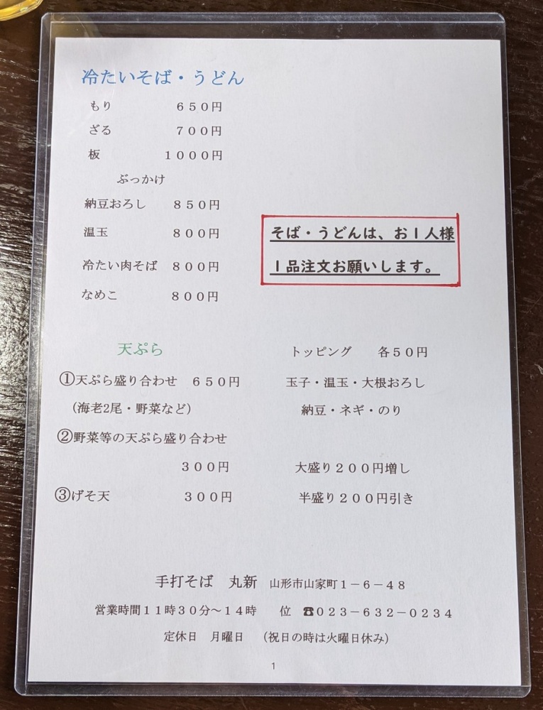 手打そば 丸新@山形市山家町 by delta · 公開済み 2021年5月17日 · 更新済み 2024年10月8日 先日、ちょっと久しぶりに伺った『手打そば 丸新』さんです。 冷たいそば『もり(大盛)』と、天ぷら『野菜等の天ぷら盛り合わせ』を頂くことに・・・ 蕎麦はもちろん、バラエティな野菜天も、相変わらず美味しかったです! お店は、山形市山家町1丁目にあります。 ごちそうさまでした。 共有: クリックして印刷 (新しいウィンドウで開きます) 印刷 投稿