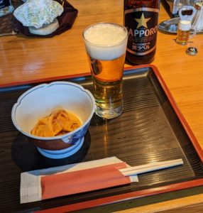 瓶ビールと一緒に最初に供された、今が旬の『ホヤ』です。