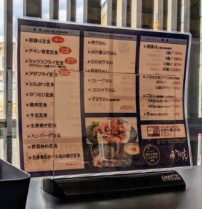 ご飯と味噌汁(具なしの味噌汁に乾燥ワカメ)は、セルフサービスです。