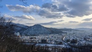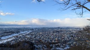 山頂付近から、まず見えてくる山形県庁や千歳山方面。