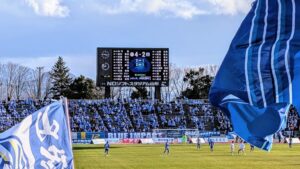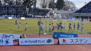 試合は山形のキャプテン土居選手が前半の早い時間帯に先取点となるゴールを決めます。