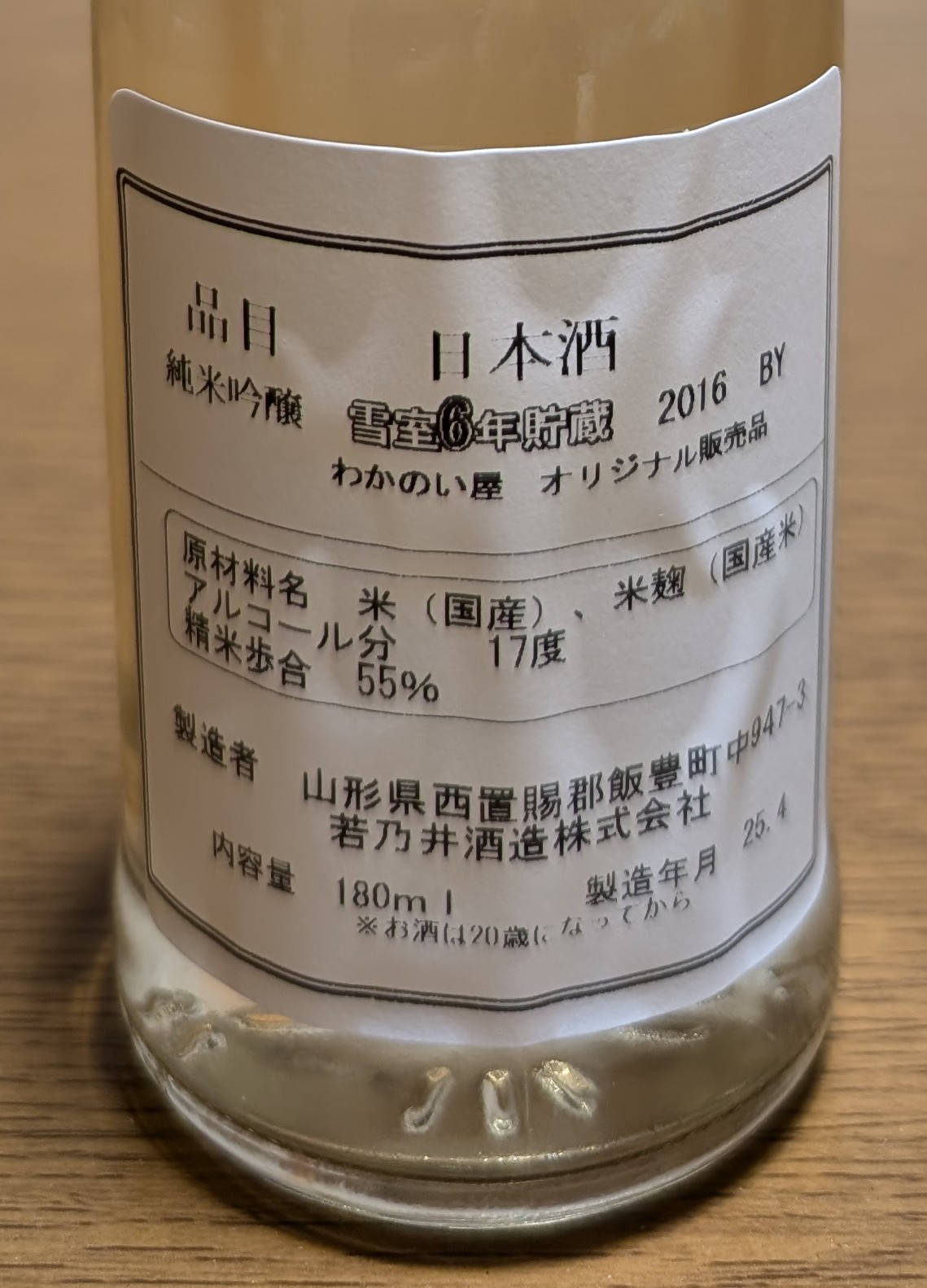 雪室6年貯蔵酒(純米吟醸)をチョイスしました。