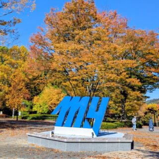 天童市にある、山形県総合運動公園のイチョウ並木道が 黄色に染まり...