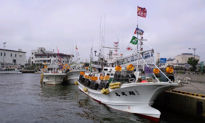 イカ釣り船が行き交う季節となり、酒田港にも各地から沢山の船が出航を待...