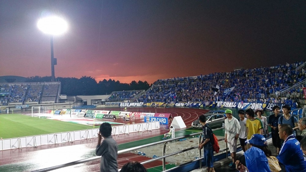 時折、雨の降る天候の中、行われた「モンテディオvsレッズ」の試合を観...