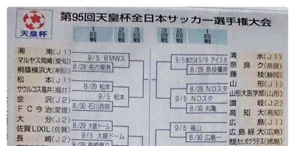 天皇杯サッカー1回戦が始まり、後半からですが、山形県天童市の会場...