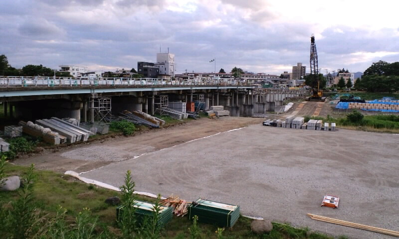 馬見ヶ崎川に架かる新しい馬見ヶ崎橋の架け替え工事が進んでいます。 川...